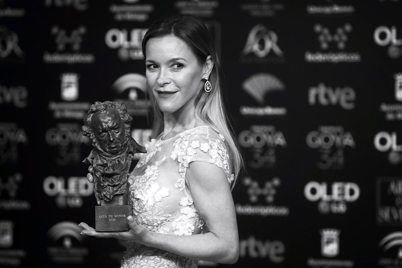 María Estévez, daughter of singer and actress Marisol, collecting the Goya de Honor from her mother, Pepa Flores…